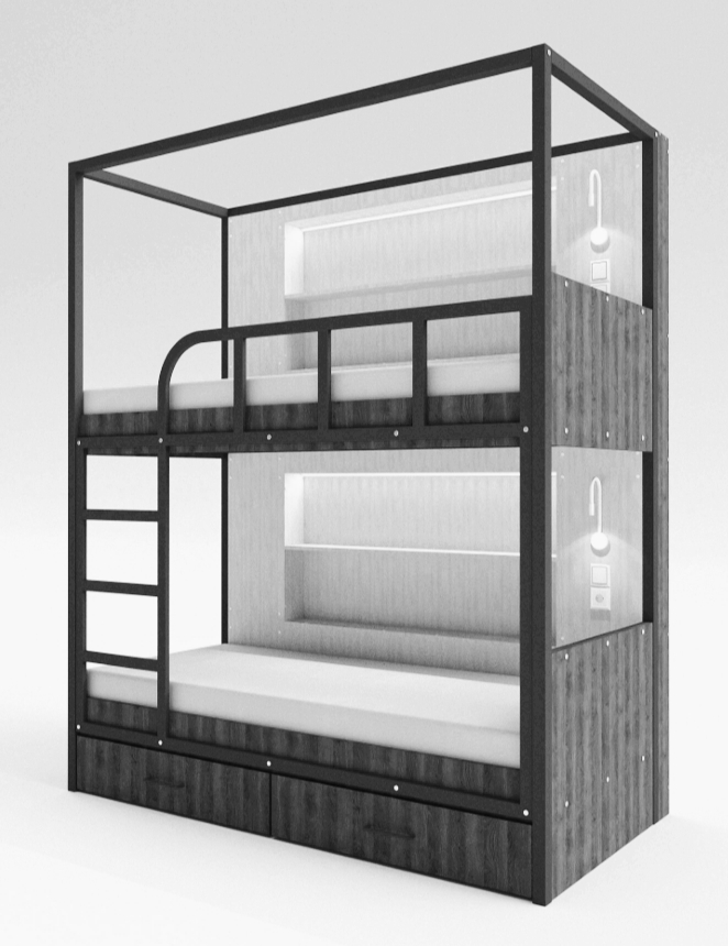 Так же изготавливаем на заказ односпальные, двухъярусные металлические кровати ЛЮБОЙ СЛОЖНОСТИ по Вашему техническому заданию. Тип двухъярусный Высота, мм 2350 Ширина, мм 900 Длина, мм 1950 Размер спального места стандарт (ШхД) 800x1900 мм Макс. статическая нагрузка на одно спальное место, кг 150 Материал каркаса ЛДСП Материал основания металлопрофиль Подсветка над каждым спальным местом (лента + светильник) Встроенная розетка Выдвижные ящики для хранения, на колесной опоре Гарантийный срок 12 месяцев Дополнительно к данной модели можно приобрести: -матрас -подушку -постельное белье Данная модель двухъярусной кровати используются для : -Казарм -Бытовок -Гостиниц -Отелей -Пансионов